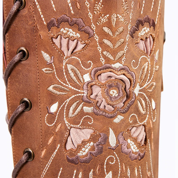 Vintage spetsiga Snörningsskor med blommiga broderier och Blockklackar