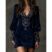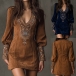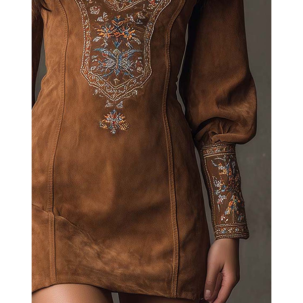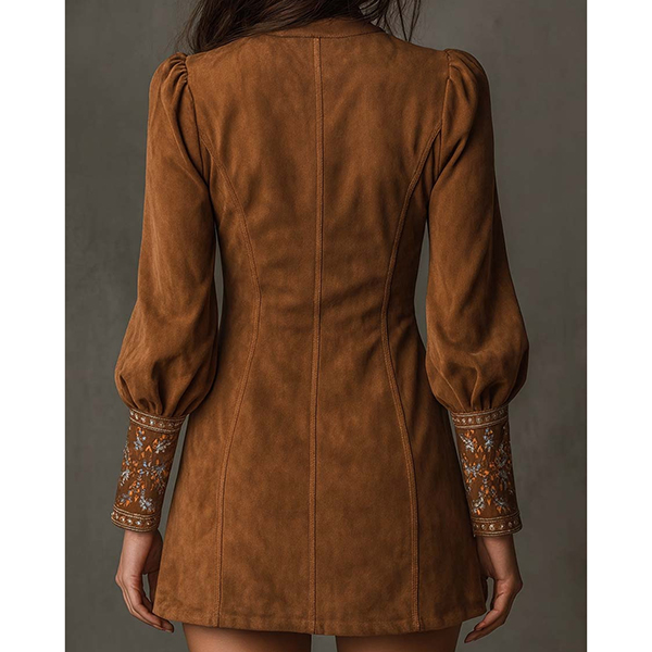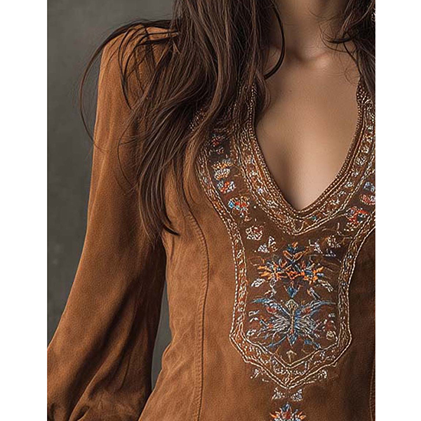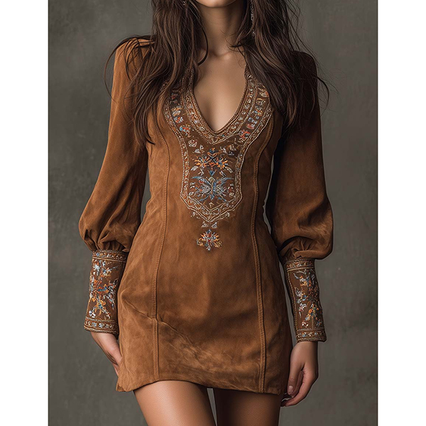 Den här klänningen har ett romantiskt blommönster, en smickrande V-ringning och lyxig konstmocka för modern vintage-elegans. Accessoarer för en sofistikerad, romantisk känsla. Perfekt för vintage-tillfällen, romantisk styling eller sofistikerad kulturarvskombination.