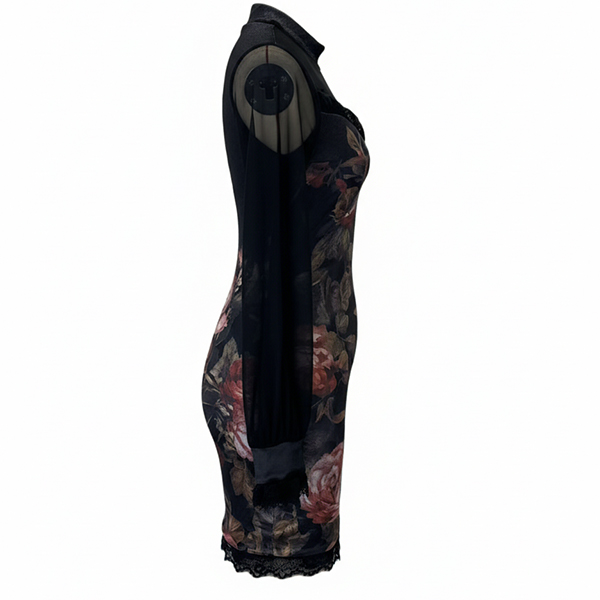 Vintageklänning med blommigt mönster, långärmad design och spetskant