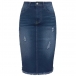 Denimkjol i retrostil med hög midja, sliten fransad fåll och smal passform