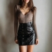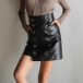 Vintage högmidjad kjol i PU-konstläder med dubbelknäppning