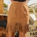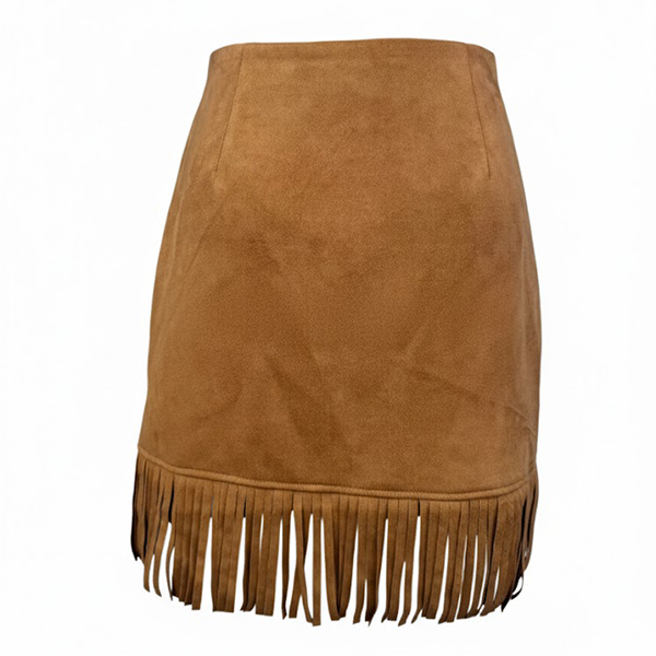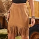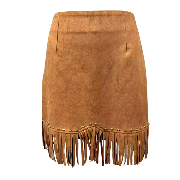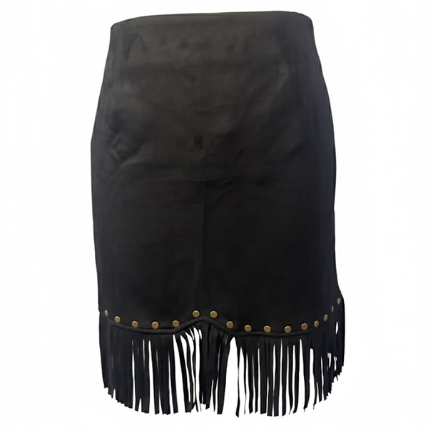 Vintagekjol med hög midja prydd med metallnitar och dekorativa tofsar