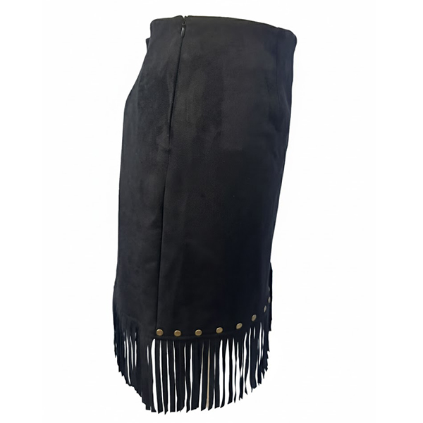 Upptäck denna iögonfallande vintage-inspirerade rockkjol med hög midja, tuffa nitdekorationer och lekfulla tofsar – ett exklusivt statementplagg som skiljer sig från mängden. Tillverkad i slitstarkt material med noggrant placerade nitar och dynamiska tofsdetaljer för en autentisk punkestetik. Perfekt att matcha med band-t-shirts och robusta kängor för en äkta rockvibe, både på festivalen och i stan. Den unika passformen framhäver midjan och skapar en kraftfull silhuett som garanterar uppmärksamhet var du än går.