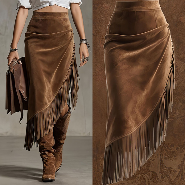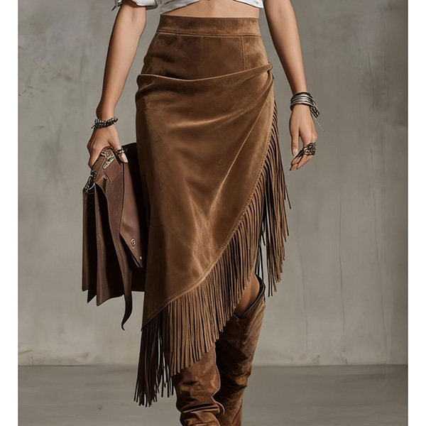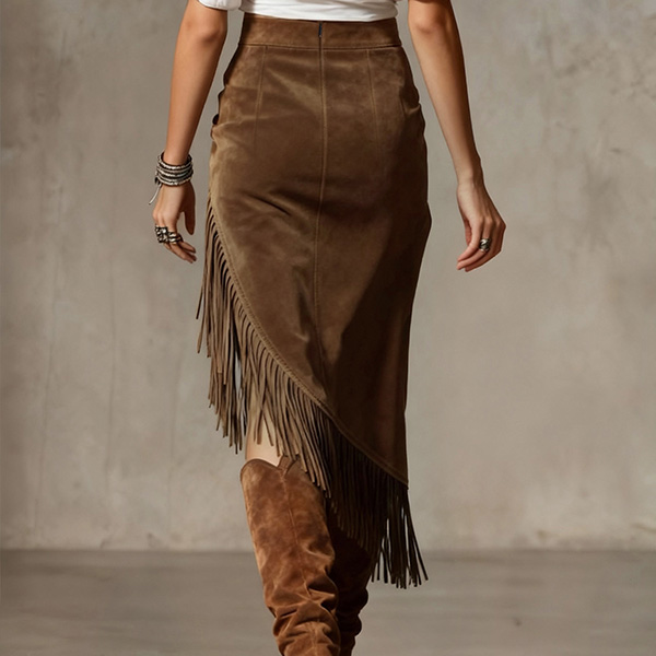 Denna förtrollande kjol har en smickrande hög midja, figurframhävande rynkor och lekfulla tofsdetaljer som ger en vintageinspirerad, bohemisk sofistikering. Kombinera den med åtsittande toppar och vintagestövlar för en modern bohemisk look.