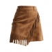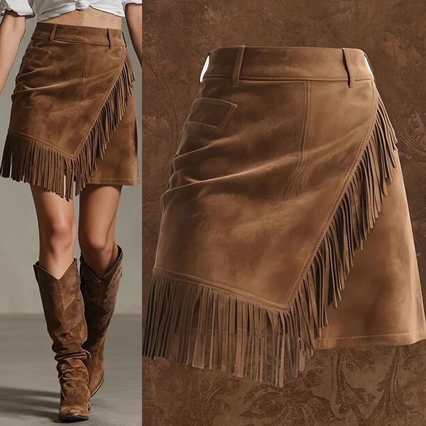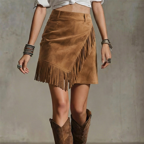 Denna charmiga kjol har en smickrande hög midja, en modern slits i sidan och lekfulla tofsdetaljer som ger en vintageinspirerad, bohemisk sofistikering. Kombinera med åtsittande toppar och ankelboots för en modern bohemisk känsla. Perfekt för vintagetillfällen, bohemisk stil eller modern retroklädsel.