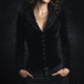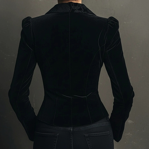 Damblus i vintage jacquard med långa puffärmar och knappslå fram