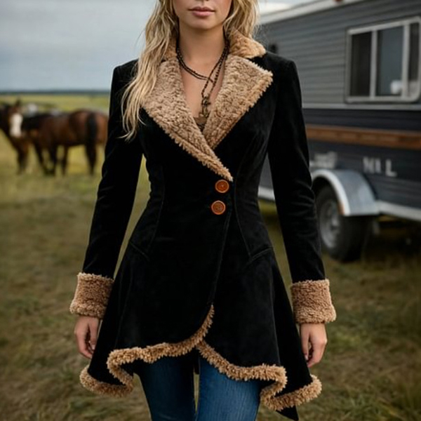 Retrojacka med slagkrage, långärmad asymmetrisk fåll och mjukt plyschfoder