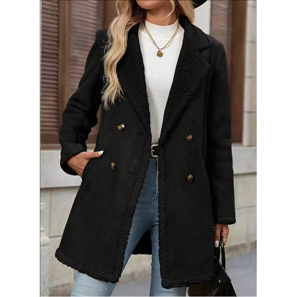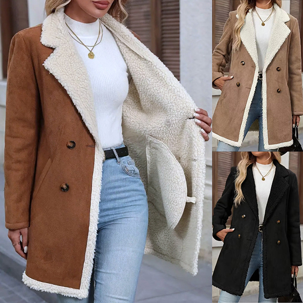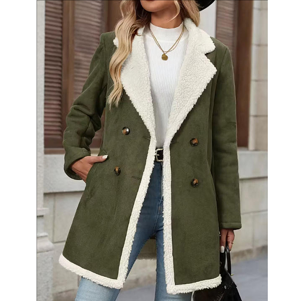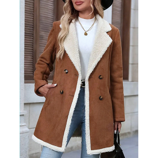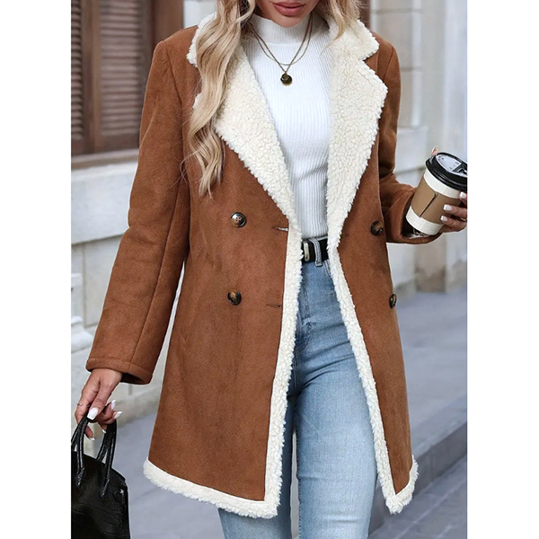 Denna lyxiga vinterjacka i mjuk konstmocka imponerar med klassiska slag och elegant dubbelknäppning, som framhäver en perfekt skräddarsydd silhuett. Överdådigt plyschfoder garanterar värme och komfort – idealisk för kalla dagar. Till skillnad från vanliga vinterjackor erbjuder denna modell premiumkvalitet, tidlös design och en rik textur som varar säsong efter säsong. Snygga axelsömmar och diskreta knappdetaljer ger en sofistikerad touch, perfekt för både stadspromenaden och formella tillfällen. Uppgradera din garderob med en jacka som förenar exklusivitet, hållbarhet och modern stil.