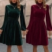 Moderiktig enfärgad sammetsklänning med lång ärm och dragkedja