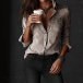 Damblus i vintage-stil med stående krage och framknäppning, långärmad