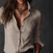 Denna klassiska blus har en elegant ståkrage, funktionell knäppning framtill och en långärmad design som skapar en vintageinspirerad, tidlös sofistikering. Kombinera den med högmidjade byxor och klassiska accessoarer för en autentisk vintagekänsla.