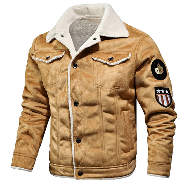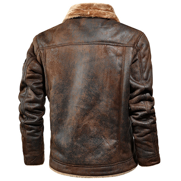 Herrjacka i PU-läder med vintage ståkrage – långärmad och plyschfodrad