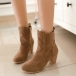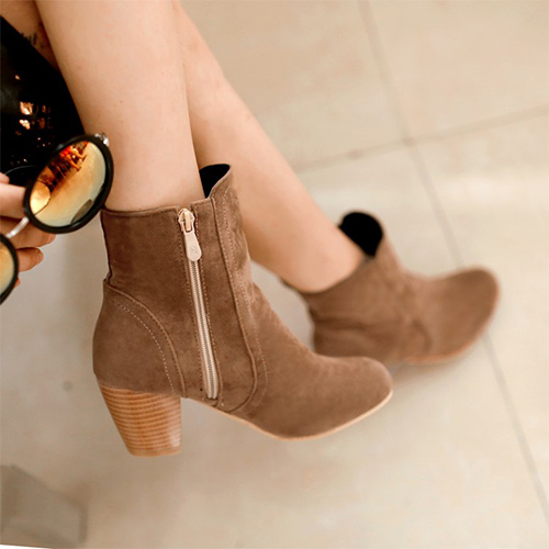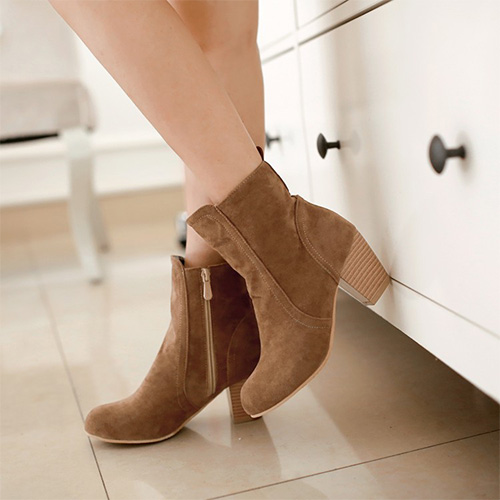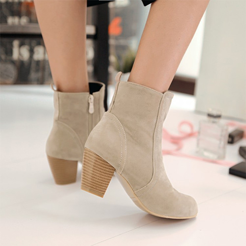 Modern comfort meets timeless style with this boots. Crafted from high quality frosted faux leather material,durable and good touch feeling. Fashion round toe and side zipper closure. Thick high-heel with anti-slip rubber sole,gives you a comfortable and safe walk. Try pairing it with a jeans or shorts with a simple t-shirt.