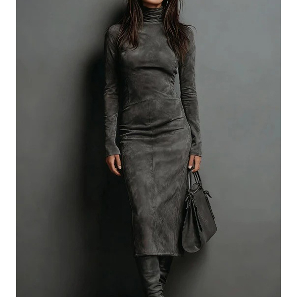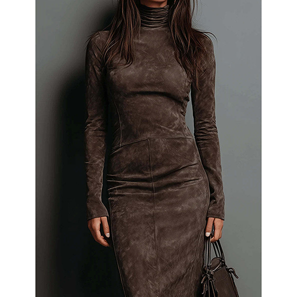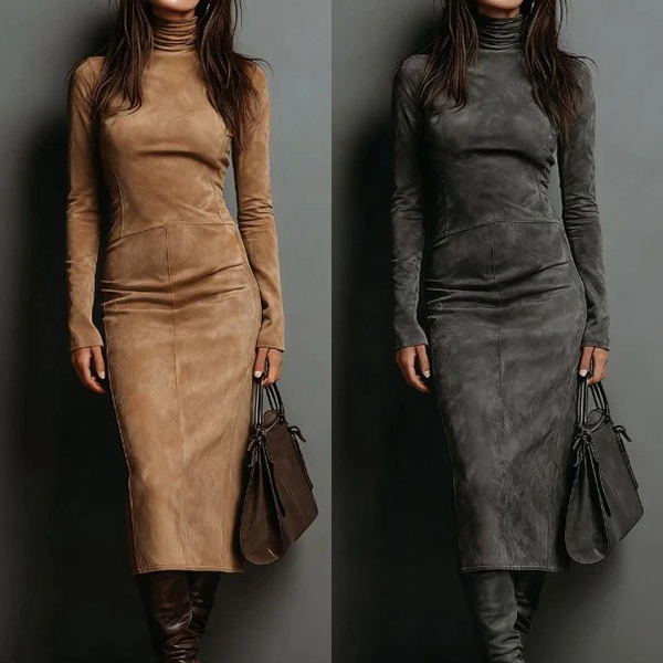 Den här klänningen har en mysig polotröja, en figurnära siluett och en elegant midilängd för en vintageinspirerad och sofistikerad look. Perfekt för vardagsbruk.