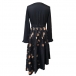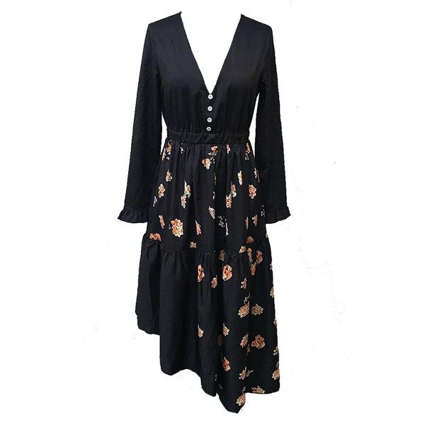 Damklänning V-ringad med knappar, långärmad med blommönster