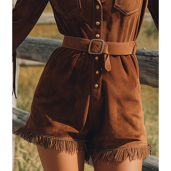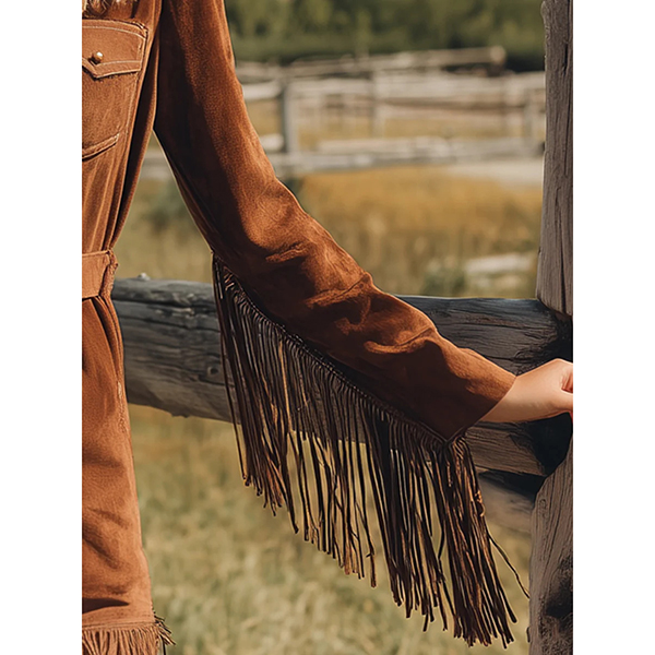 Denna charmiga sparkdräkt har en elegant V-ringning, lekfulla tofsutsmyckningar och en bekväm långärmad design som ger en vintageinspirerad bohemisk sofistikering. Kombinera med ankelboots och smycken i lager för en bohemisk vintagekänsla.