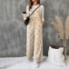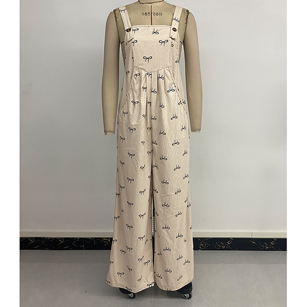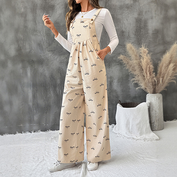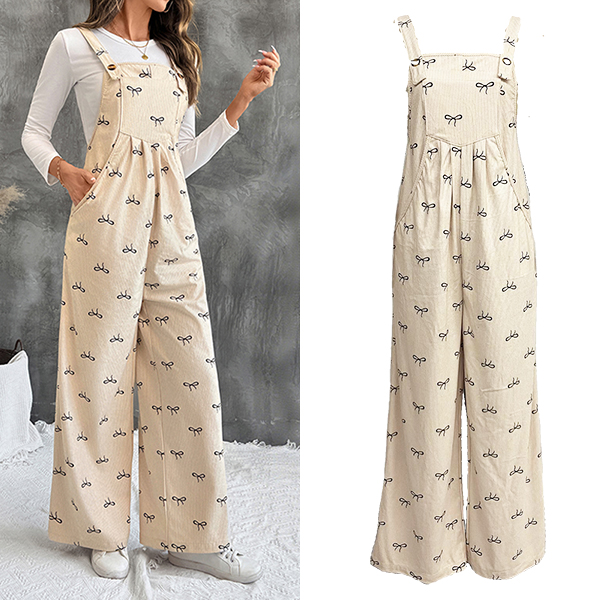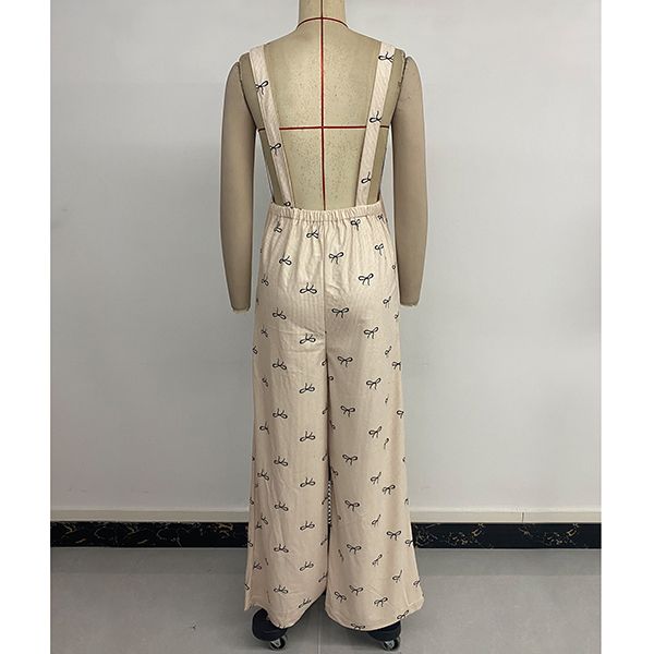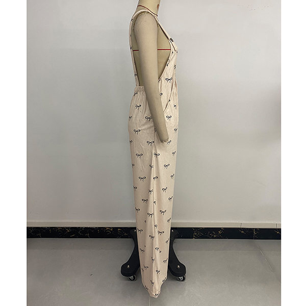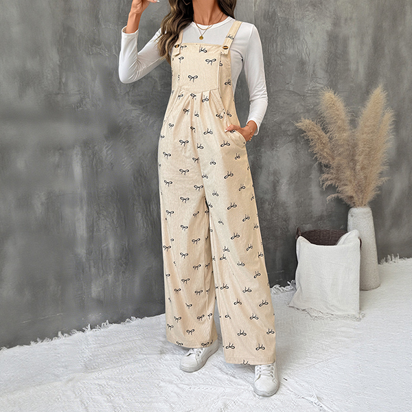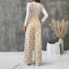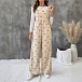 Moderiktig rosetttryckt fyrkantig halsringning sidofickor rakt skuren strumphållare jumpsuit