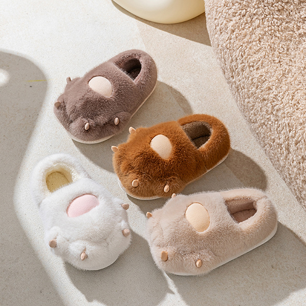 Plyschtofflor med tassmotiv – halkfria och extra varma