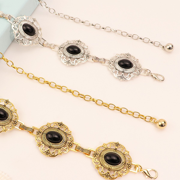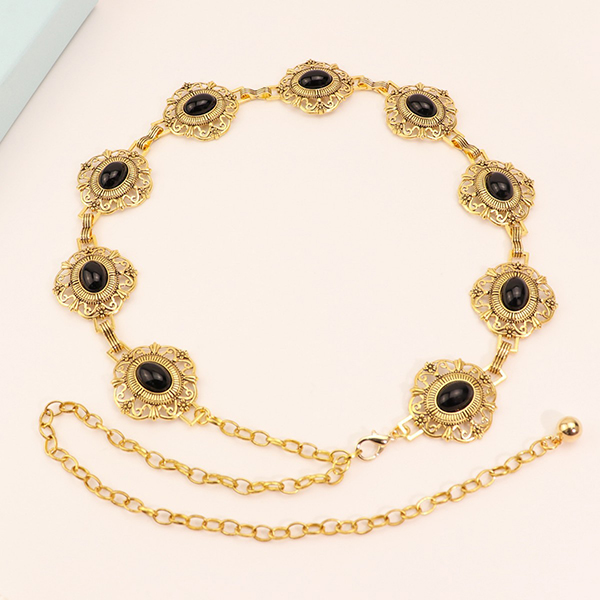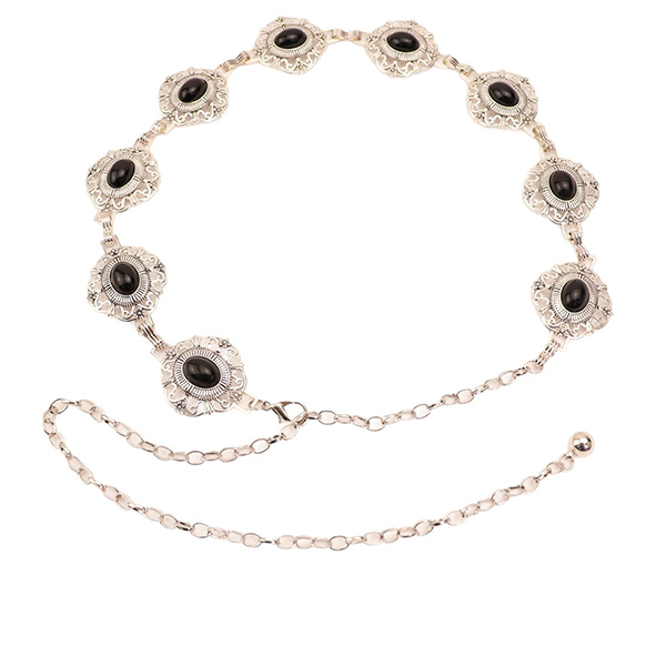 Midjebälte i westernstil – boho festivalkedja med svarta stenar