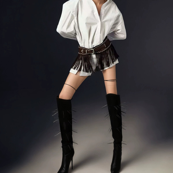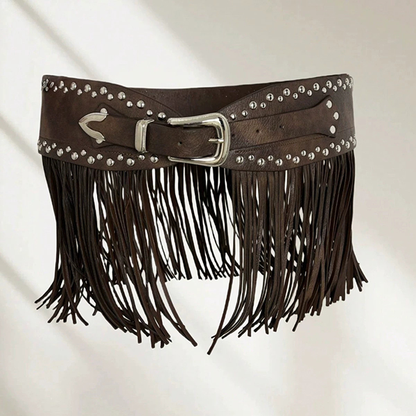 Bälte i konstläder – westerninspirerat med fransar och silvriga nitar