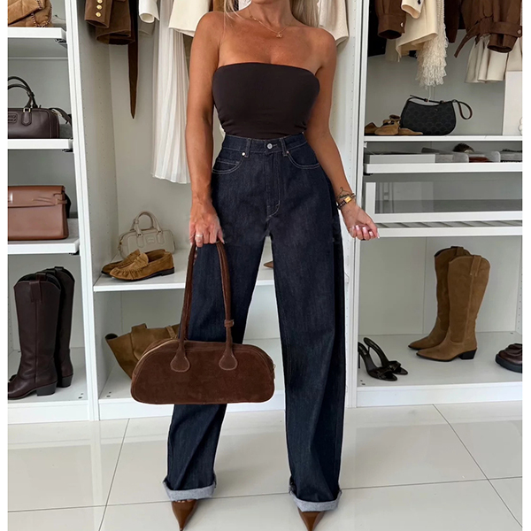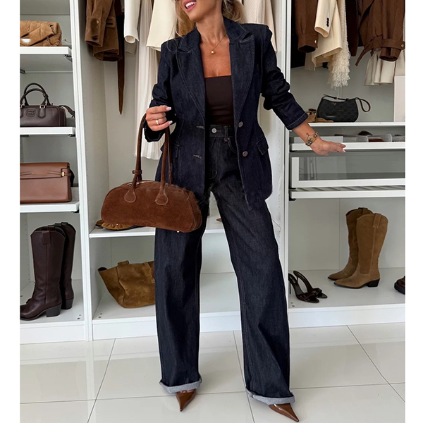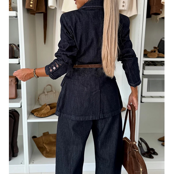 Denimjumpsuit med raka, vida ben i golvlång modell