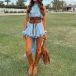 Boho-rufflat tvådelat set för dam med croppad topp, hög hals, asymmetrisk fåll och kjol – perfekt sommarfestivaloutfit
