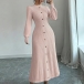 Damklänning, ribbstickad A-linje i lång modell med lyktärmar och knäppning framtill