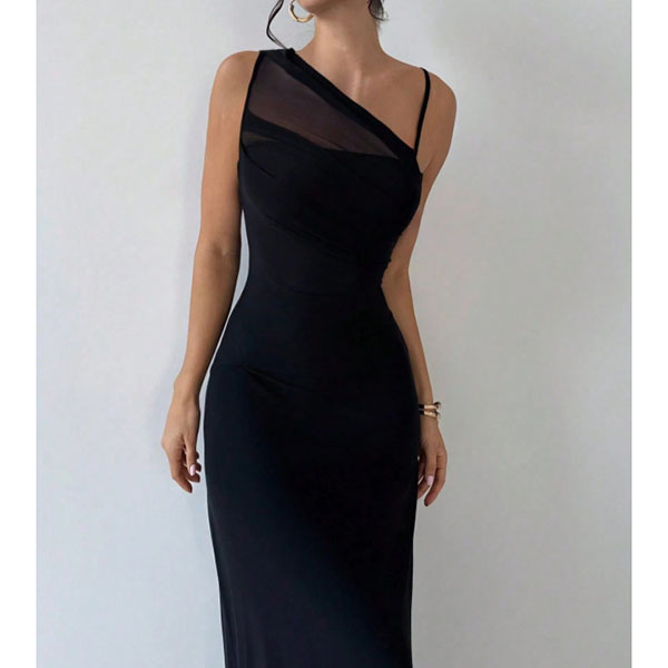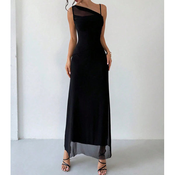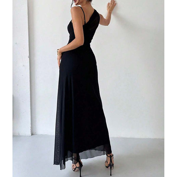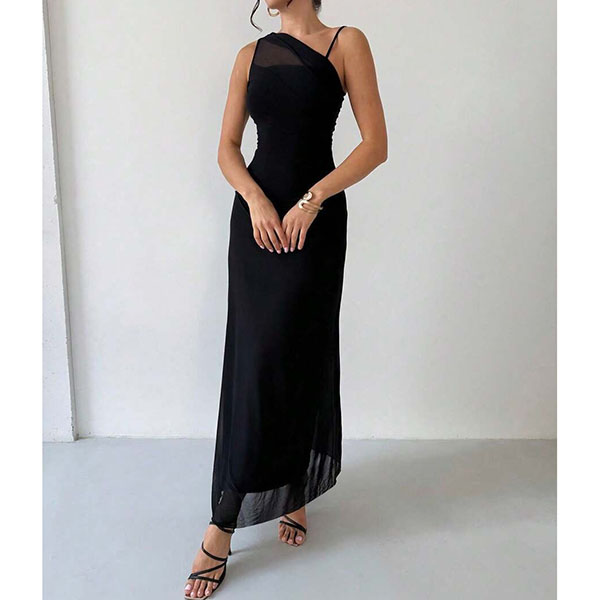 Kliv in i sofistikeringen med denna hisnande svarta maxiklänning. En modern twist på den klassiska lilla svarta, designad för kvinnan som värdesätter diskret glamour.