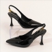 Damskor – Slingbackpumps med rem och spänne, sexiga högklackade pumps med spetsig tå i lack och leopardmönster