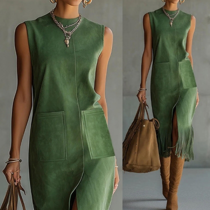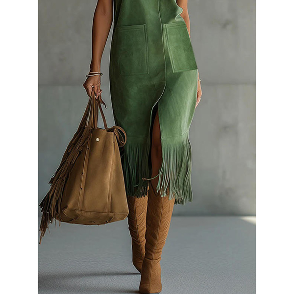 Kanalisera 70‑talets fria vibbar med en modern twist. Den iögonfallande, fransade fållen ger dramatisk rörelse och stil och gör detta plagg perfekt för festivaler, konserter eller för alla som älskar boho‑western‑estetiken.