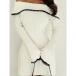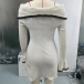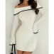 Damklänning off-shoulder, ribbstickad med kontrasterande spetskant, vikbar ringning, långa utsvängda ärmar, bodycon-mini