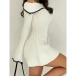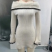 Denna miniklänning har en lockande off-shoulder-stil med texturerad ribbstickning och en elegant kontrasterande spetskant för modern, romantisk elegans. Perfekt för romantiska tillfällen, modern stil eller sofistikerad kvällskoordination.