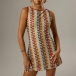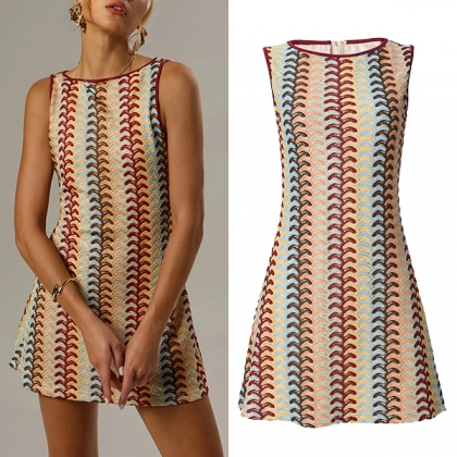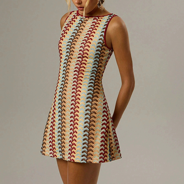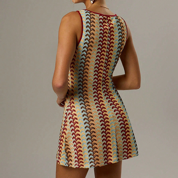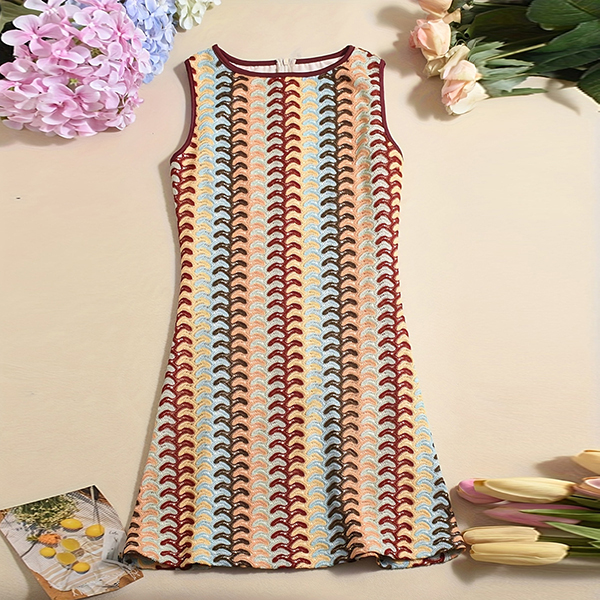 Retro ärmlös damklänning med vågmönster, boho stickad sommar-miniklänning