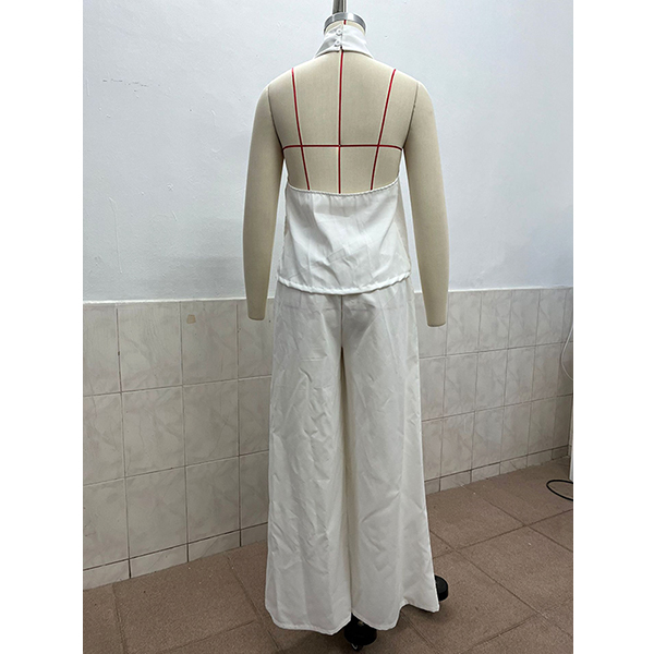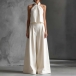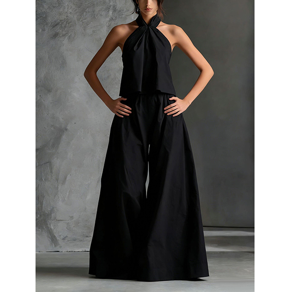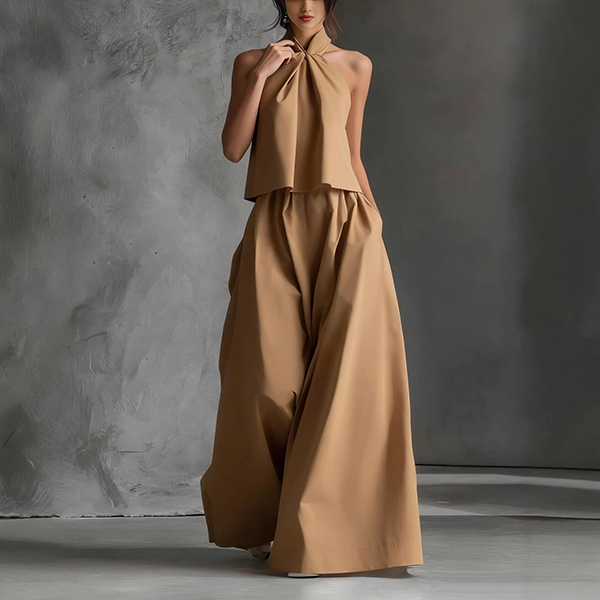 Tvådelat set för dam – halternecktopp och vida byxor, somrig resortoutfit