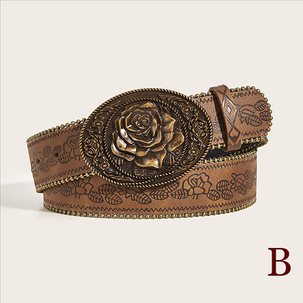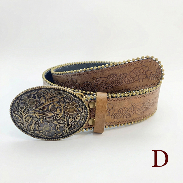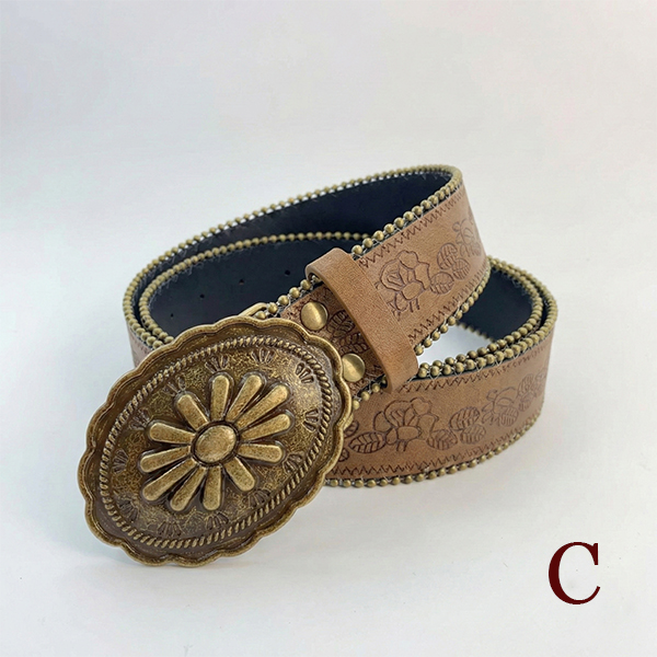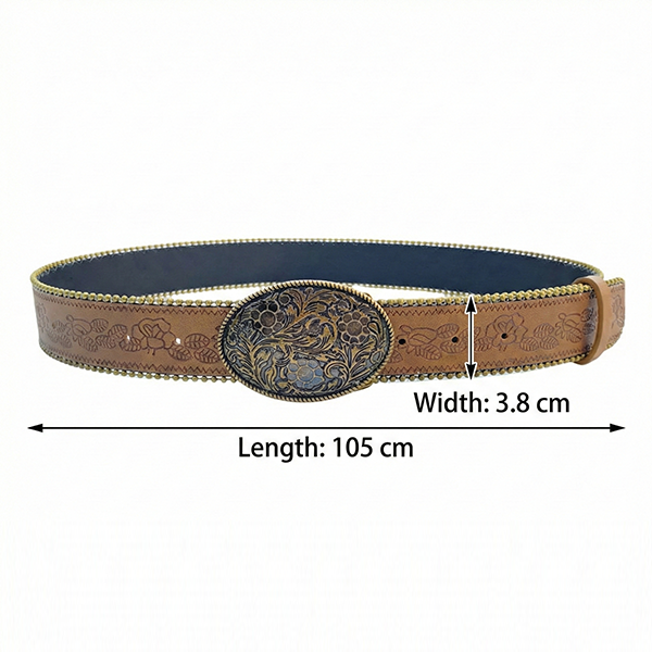 Dambälte westerninspirerat blommönster, Y2K Boho midjebälte med stort metallspänne för jeans/kjol/klänning