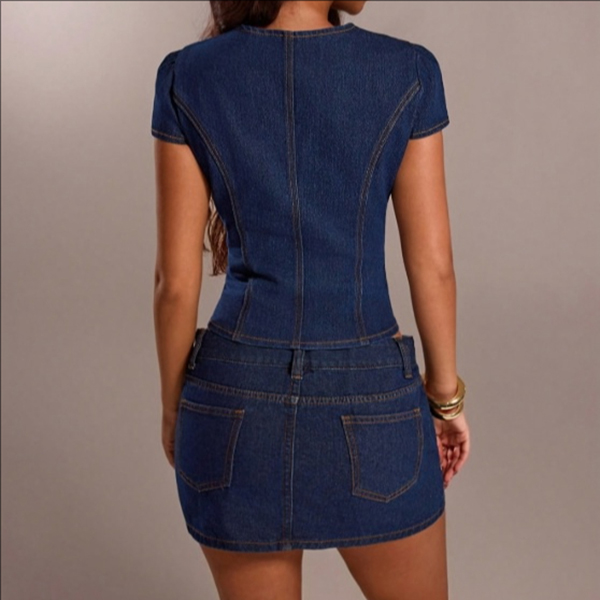 Det här är inte en vanlig jeansskjorta; det är en noggrant skräddarsydd korsetttopp, designad för att både smickra och forma. Med en romantisk hjärtformad halsringning och lekfulla kortärmar skapar den här toppen den perfekta balansen mellan edgy och feminin. De strukturerade panelerna påminner om en vintage-bustier, ger en åtsittande midja och framhäver dina kurvor, medan den djupa mörka indigotvätten håller looken elegant och modern. Oavsett om du satsar på en dubbeldenim-look eller matchar den med dina favoritbyxor till fest, är den här croptopen ett garanterat blickfång.
