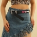 Y2K gothiskt korsbälte för kvinnor – E-girl punkstil, midjebälte i PU-läder med färgglada lapptäcksdetaljer